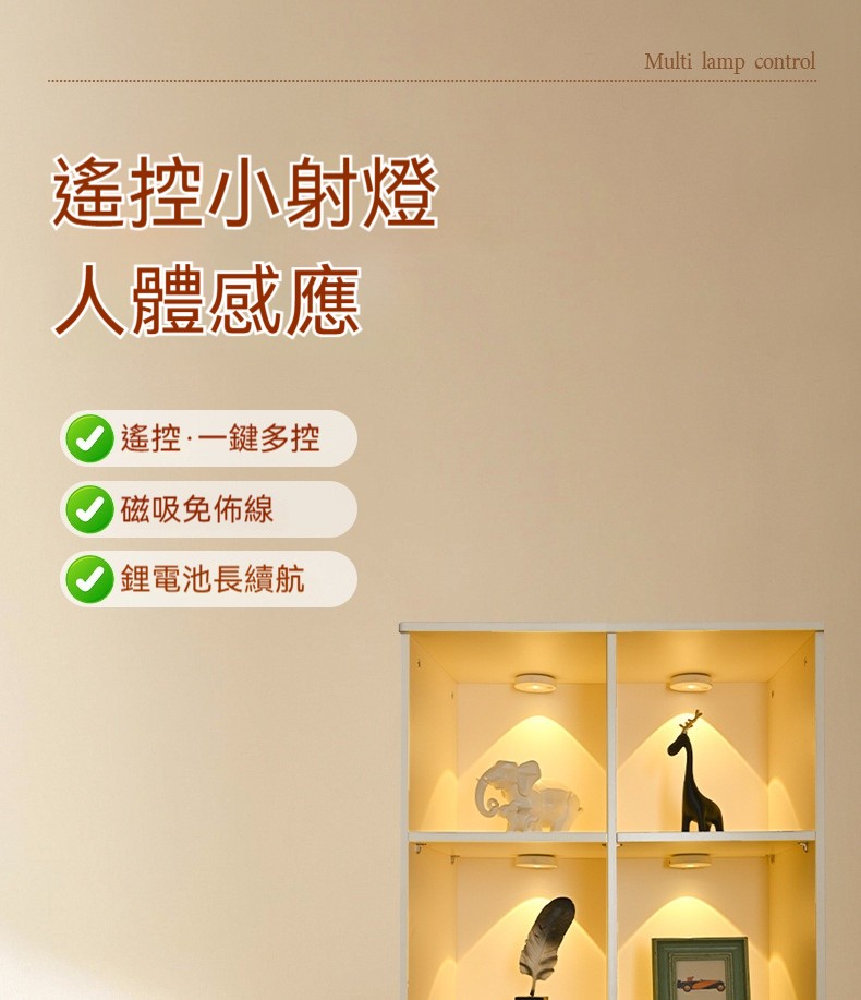 家居光影術!「遙控磁吸感應射燈」 磁吸免鑽・人來即亮・三色調光✨ 一鍵打造高級感「小山丘光效」,酒櫃、展示櫃質感瞬間升級!