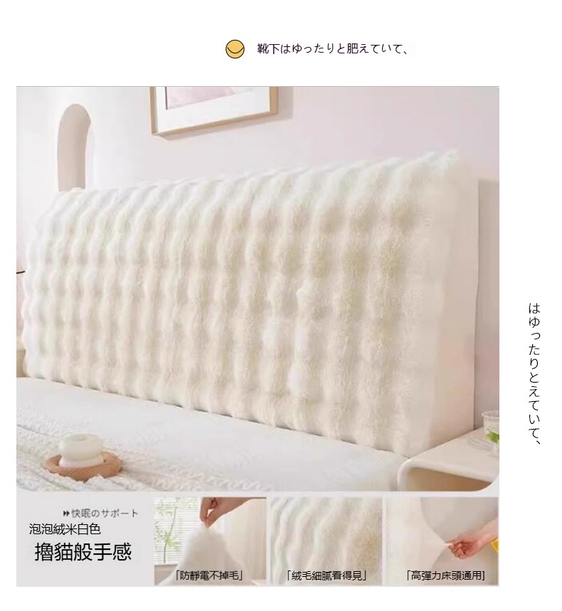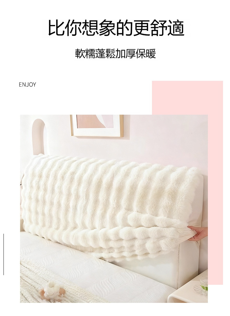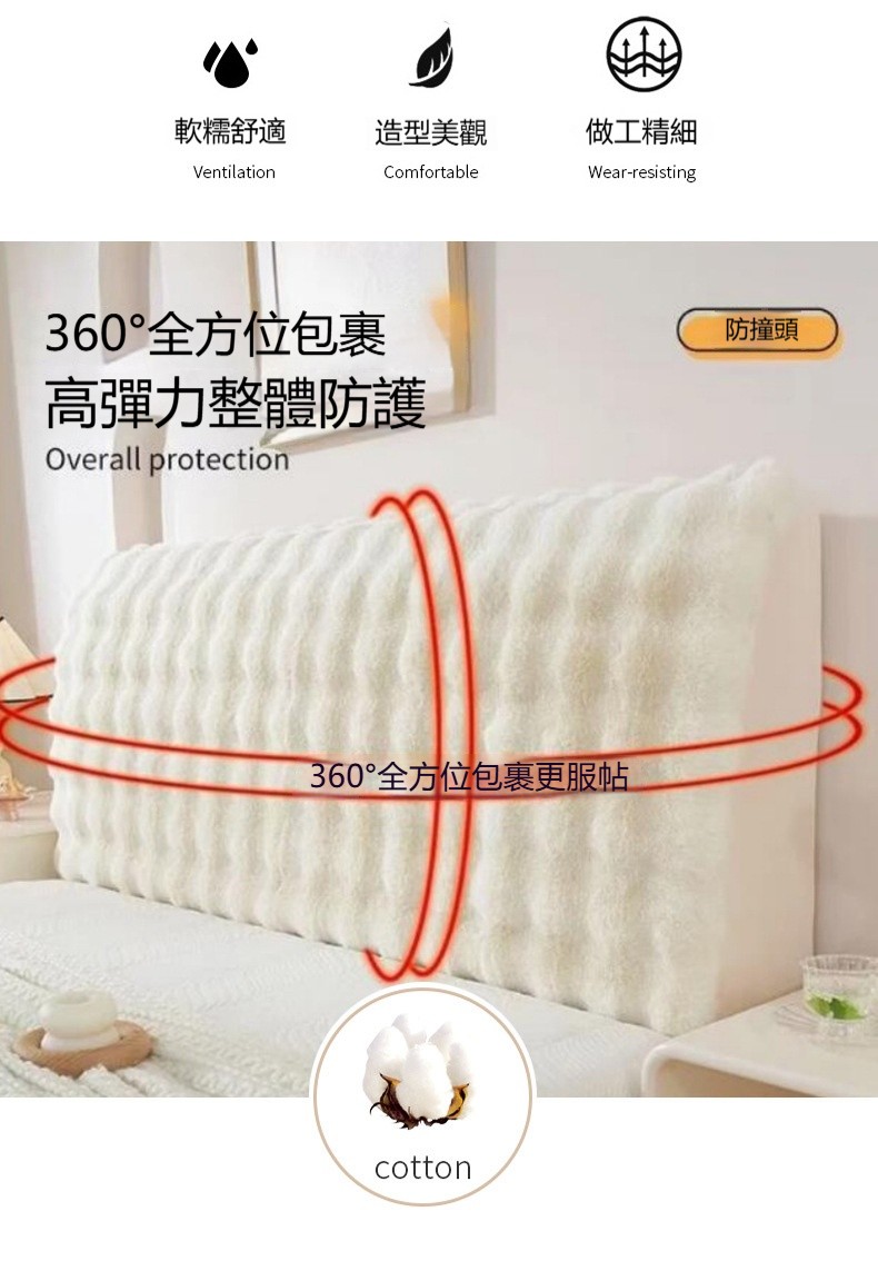 【貓肚感全包床頭罩】採用 澳洲超柔短絨 + 高彈力針織底層✨觸感如貓肚般軟糯蓬鬆✨全方位緊密包裹各類床頭板✨防塵遮醜、親膚防撞✨讓臥室瞬間升級溫馨INS風~