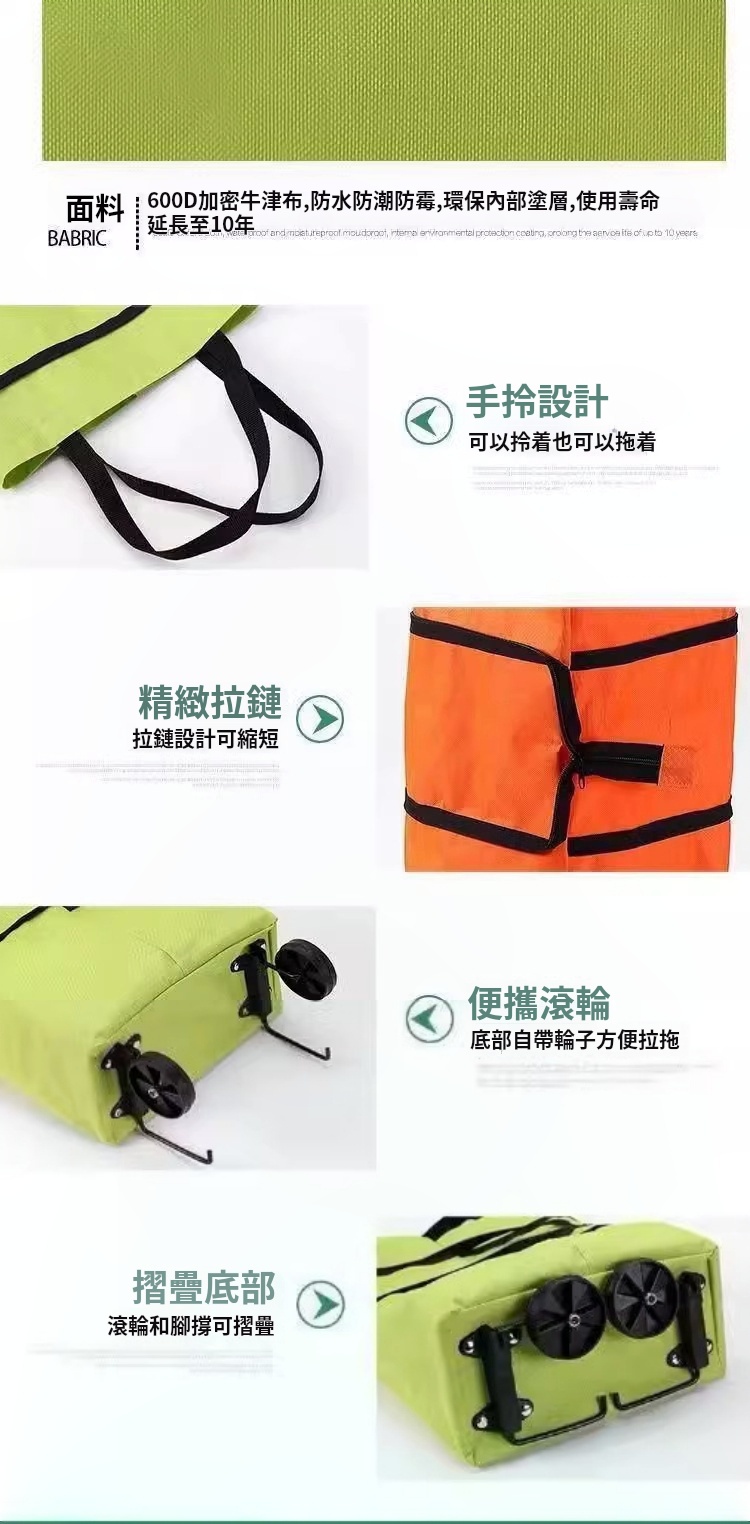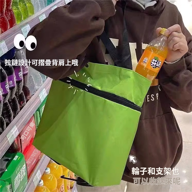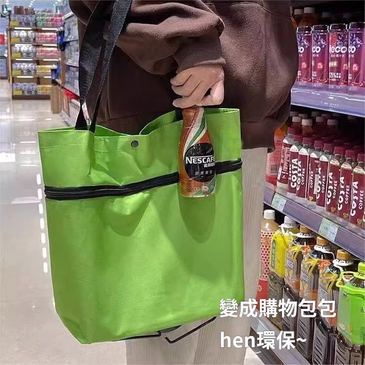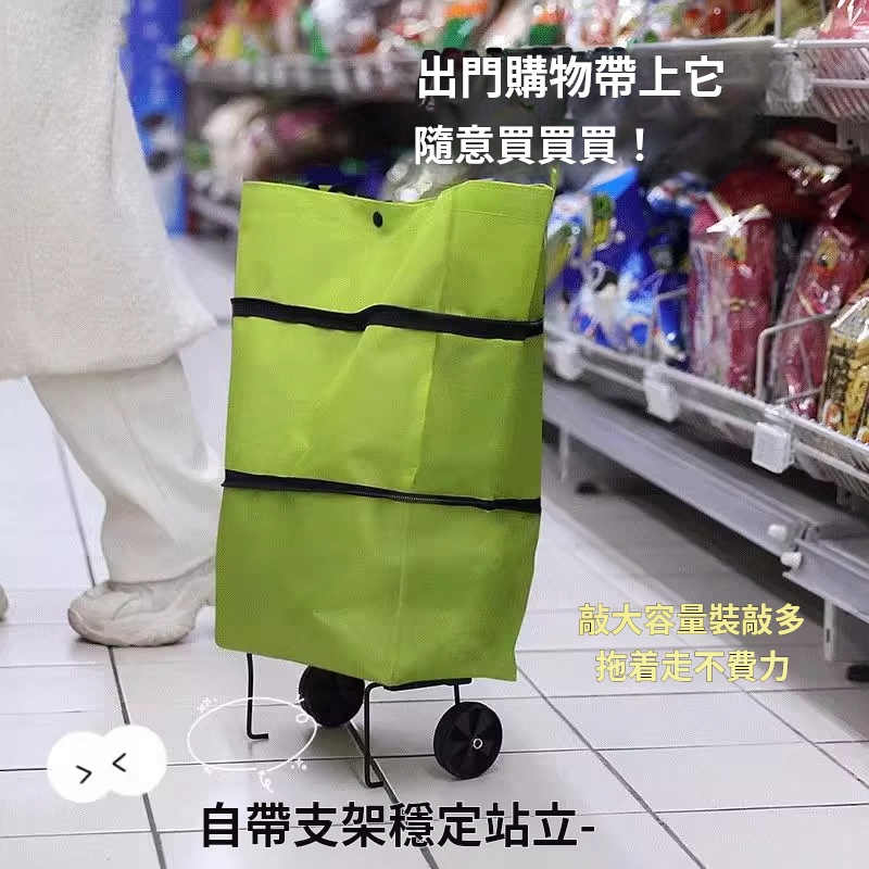 【自帶輪摺疊購物袋】 拉車收納二合一・拖行省力|把輕巧便利拖回家!買菜取快遞從此優雅輕鬆 ✨